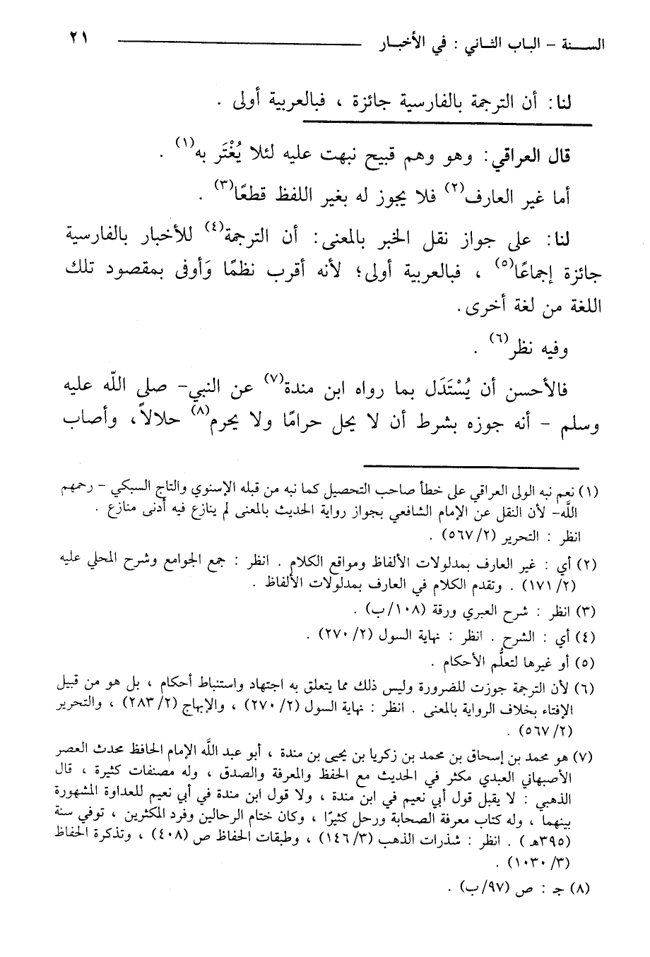 لنا: على جواز نقل الخبر بالمعنى: أن الترجمة للأخبار بالفارسية جائزة إجماعًا، فبالعربية أولى؛ لأنه أقرب نظمًا وأوفى بمقصود تلك اللغة من لغة أخرى.