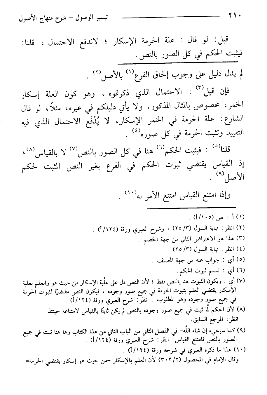 فإن قيل: الاحتمال الذي ذكرتموه، وهو كون العلة إسكار الخمر، مخصوص بالمثال المذكور، ولا يأتي دليلكم في غيره، مثلاً، لو قال الشارع: علة الحرمة في الخمر الإسكار، لا يدفع الاحتمال الذي فيه التقييد وتثبت الحرمة في كل صورة.
