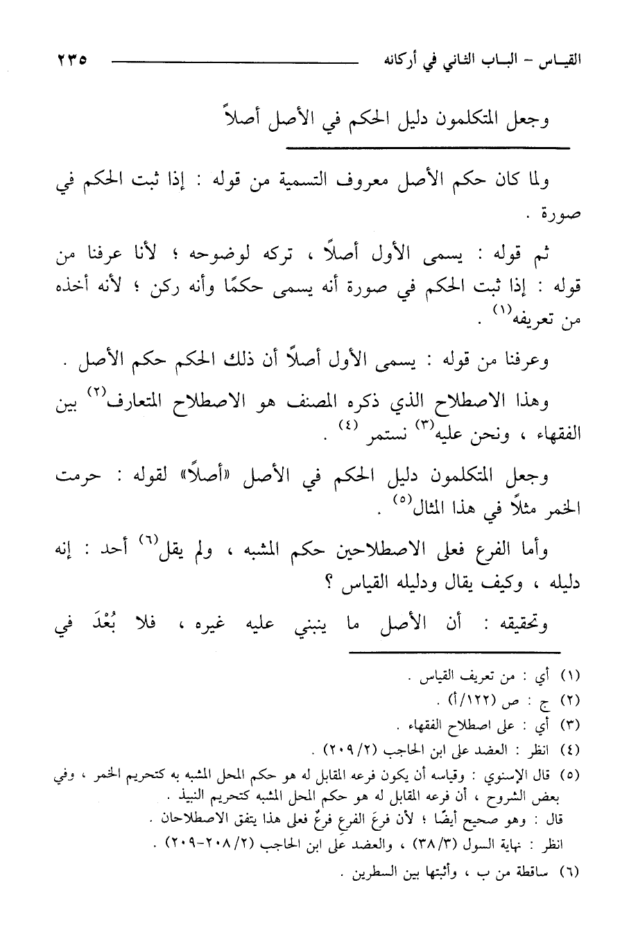 وجعل المتكلمون دليل الحكم في الأصل "أصلاً" لقوله: حرمت الخمر مثلاً في هذا المثال.