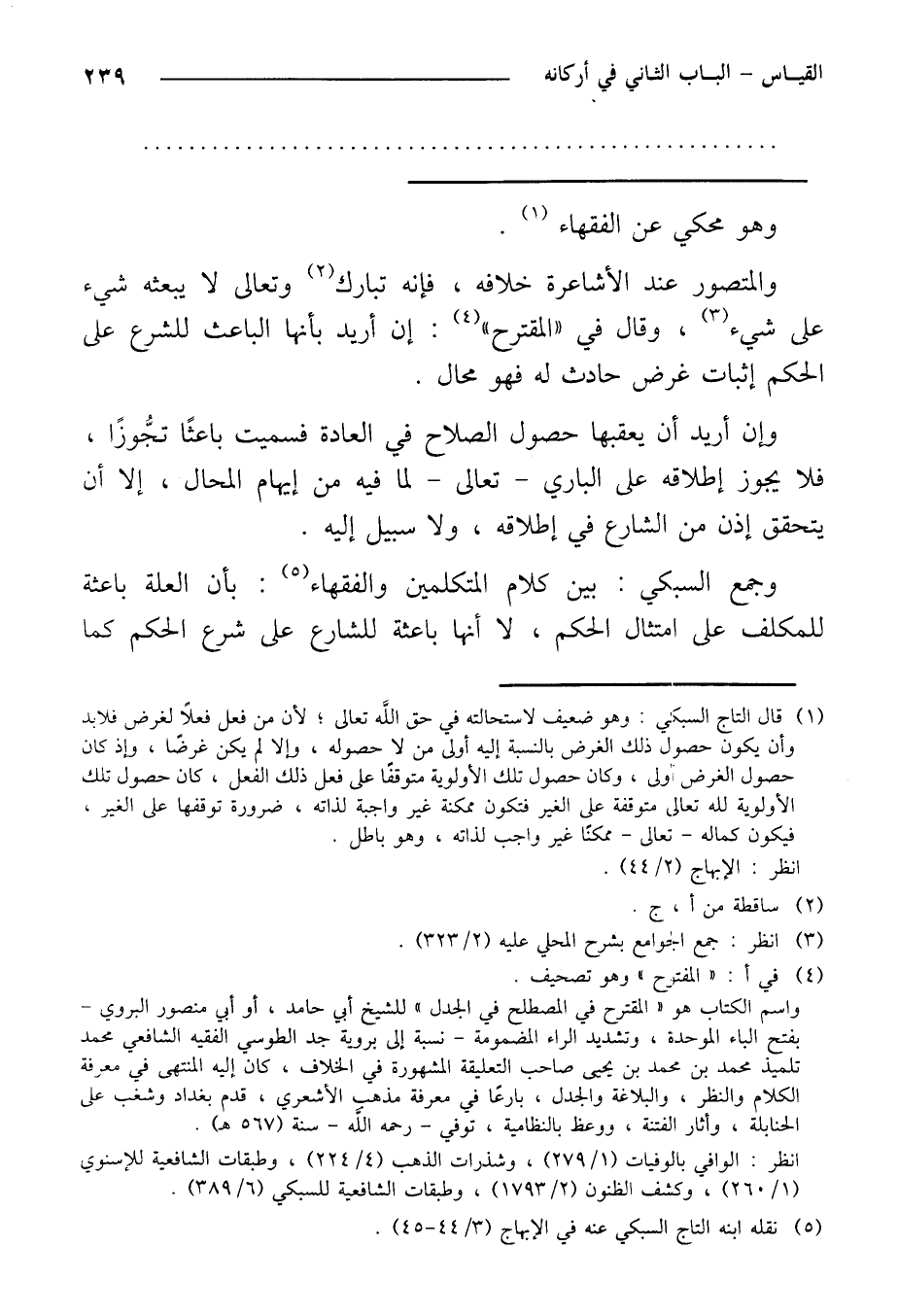 والمتصور عند الأشاعرة خلافه، فإنه تبارك وتعالى لا يبعثه شيء على شيء، وقال في "المقترح": إن أريد بأنها الباعث للشرع على الحكم إثبات غرض حادث له فهو محال.