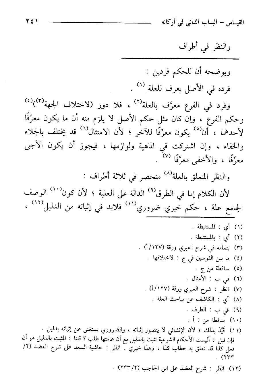 والنظر المتعلق بالعلة منحصر في ثلاثة أطراف: