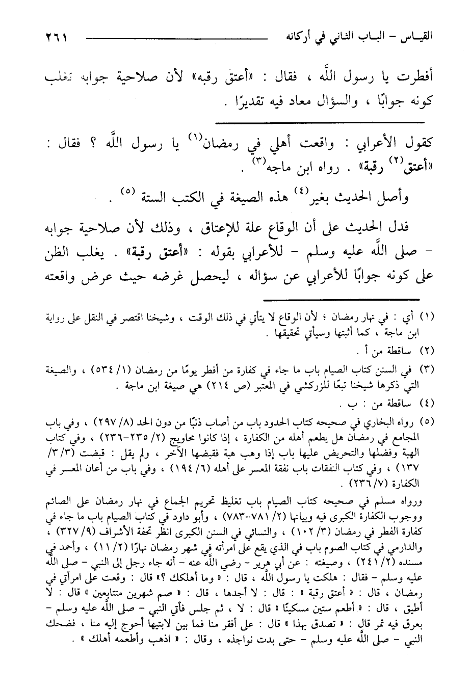 فدل الحديث على أن الوقاع علة للإعتاق، وذلك لأن صلاحية جوابه -صلى الله عليه وسلم- للأعرابي بقوله: "أعتق رقبة". يغلب الظن على كونه جوابًا للأعرابي عن سؤاله، ليحصل غرضه حيث عرض واقعته