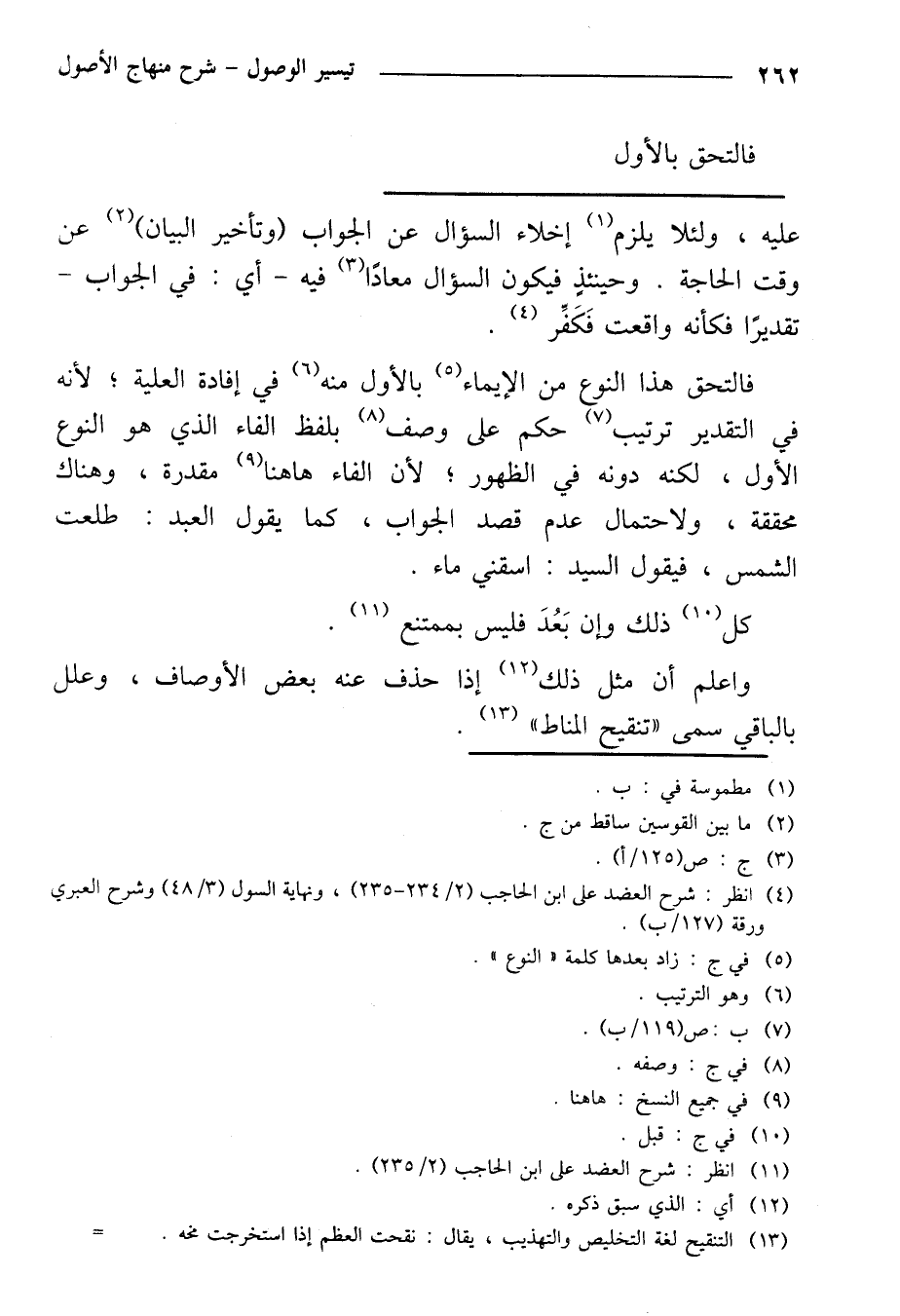 فالتحق هذا النوع م الإيماء بالأول منه في إفادة العلية؛ لأنه في التقدير ترتيب حكم على وصف بلفظ الفاء الذي هو النوع الأول، لكنه دونه في الظهور؛ لأن الفاء هاهنا مقدرة، وهناك محققة، ولاحتمال عدم قصد الجواب، كما يقول العبد: طلعت الشمس، فيقول السيد: اسقني ماء.