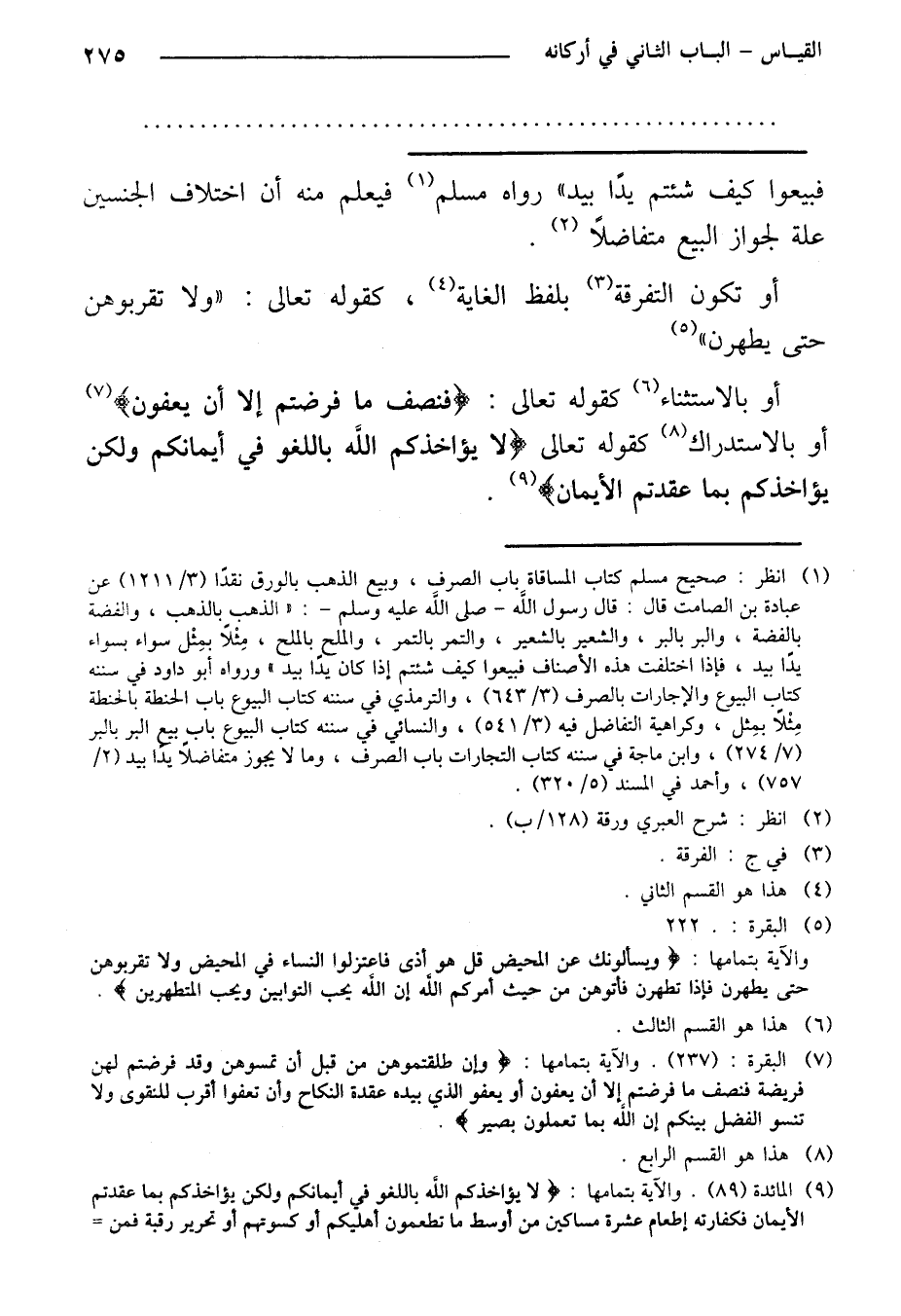 أو بالاستثناء كقوله تعالى: {فنصف ما فرضتم إلا أن يعفون} أو بالاستدراك كقوله تعالى {لا يؤاخذكم الله باللغو في أيمانكم ولكن يؤاخذكم بما عقدتم الأيمان}.