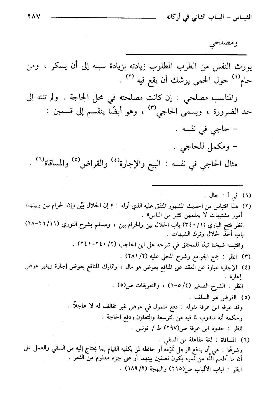 مثال الحاجي في نفسه: البيع والإجارة والقراض والمساقاة.
