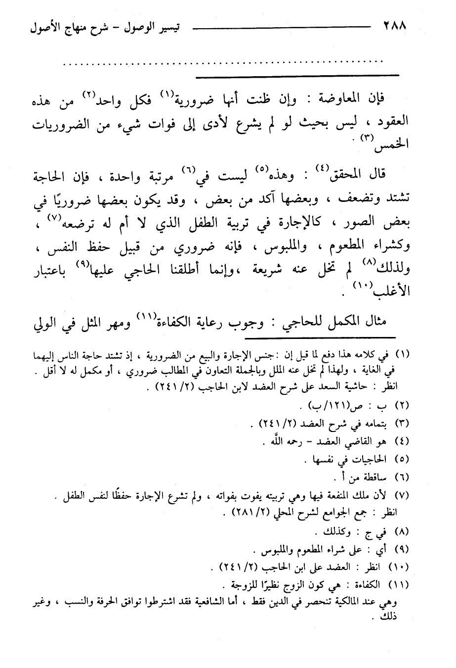 قال المحقق: وهذه ليست في مرتبة واحدة، فإن الحاجة تشتد وتضعف، وبعضها آكد من بعض، وقد يكون بعضها ضروريًا في بعض الصور، كالإجارة في تربية الطفل الذي لا أم له ترضعه، وكشراء المطعوم، والملبوس، فإنه ضروري من قبيل حفظ النفس، ولذلك لم تخل عنه شريعة، وإنما أطلقنا الحاجي عليها باعتبار الأغلب.