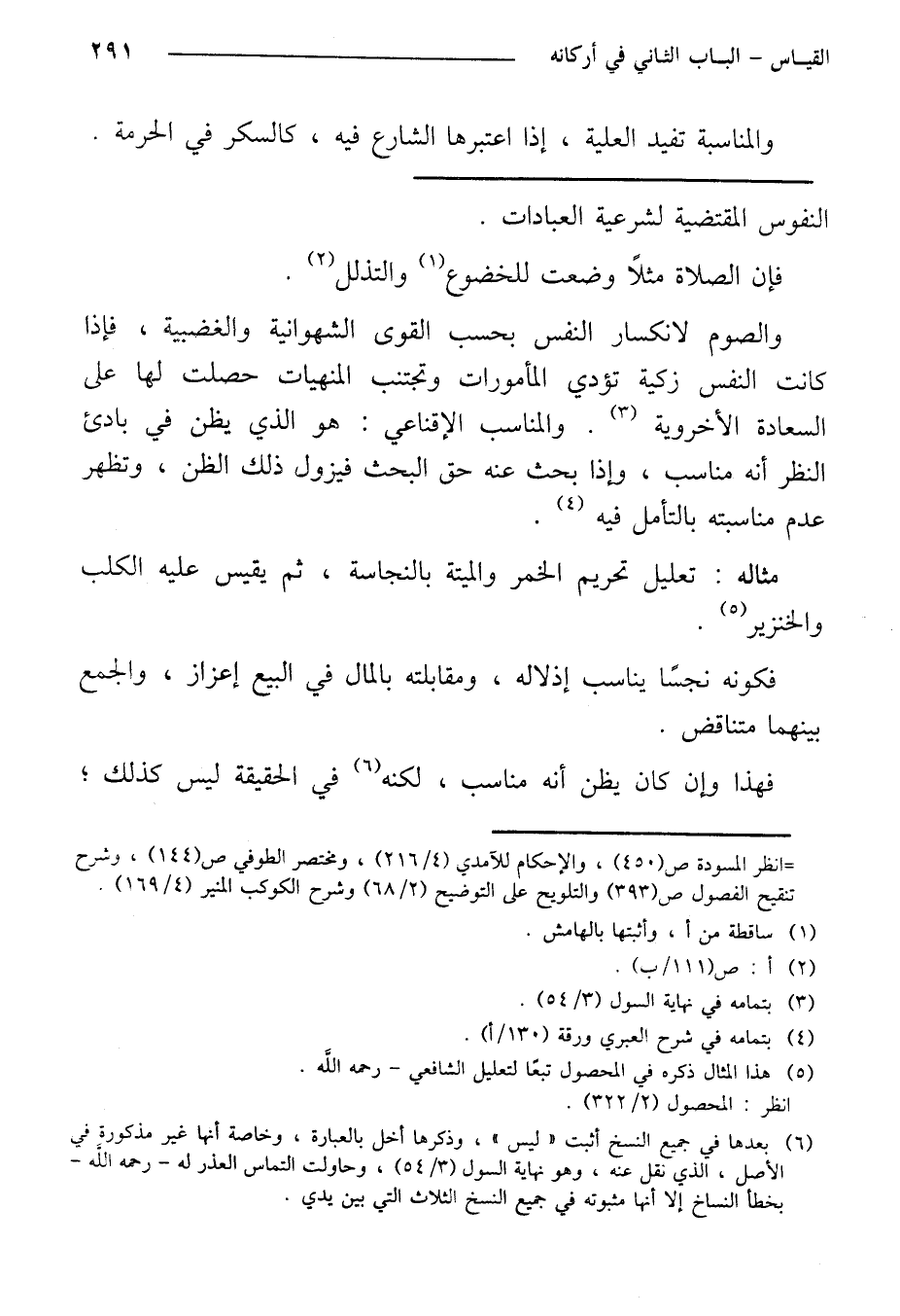 والصوم لانكسار النفس بحسب القوى الشهوانية والغضبية، فإذا كانت النفس زكية تؤدي المأمورات وتجتنب المنهيات حصلت لها على السعادة الأخروية. والمناسب الإقناعي: هو الذي يظن في بادئ النظر أنه مناسب، وإذا بحث عنه حق البحث فيزول ذلك الظن، وتظهر عدم مناسبته بالتأمل فيه.