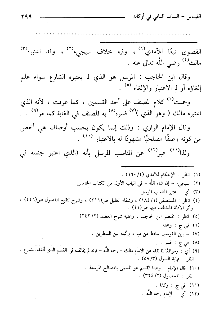 وقال الإمام الرازي: وذلك إنما يكون بحسب أوصاف هي أخص من كونه وصفًا مصلحيًّا مشهودًا له بالاعتبار.