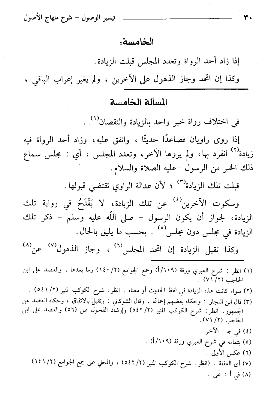 وسكوت الآخرين عن تلك الزيادة، لا يقدح في رواية تلك الزيادة، لجواز أن يكون الرسول -صلى الله عليه وسلم -ذكر تلك الزيادة في مجلس دون مجلس. بحسب ما يليق بالحال.