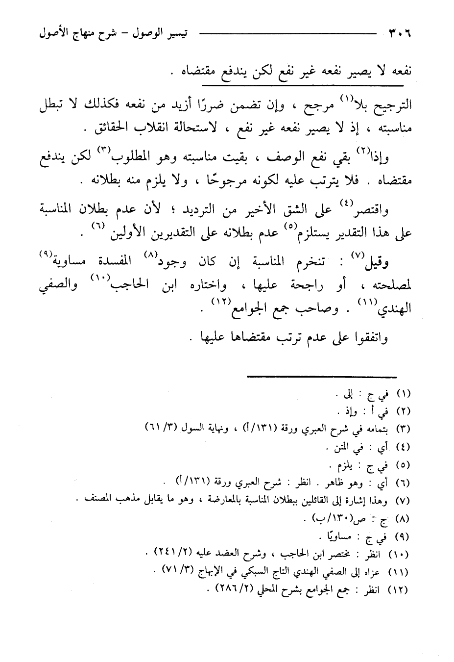 وقيل: تنخرم المناسبة إن كان وجود المفسدة مساوية لمصلحته، أو راجحة عليها، واختاره ابن الحاجب والصفي الهندي. وصاحب جمع الجوامع.