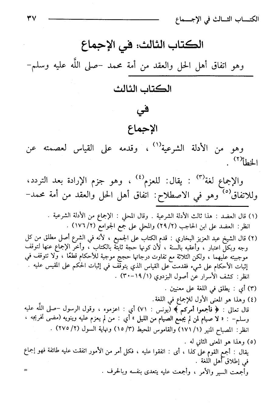 والإجماع لغة: يقال: للعزم، وهو جزم الإرادة بعد التردد، وللاتفاق وهو في الاصطلاح: اتفاق أهل الحل والعقد من أمة محمد -