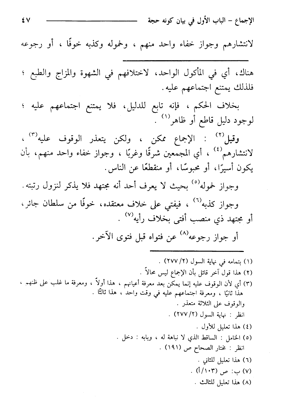 وقيل: الإجماع ممكن، ولكن يتعذر الوقوف عليه، لانتشارهم، أي المجمعين شرقًا وغربًا، وجواز خفاء واحد منهم، بأن يكون أسيرًا، أو محبوسًا، أو منقطعًا عن الناس.