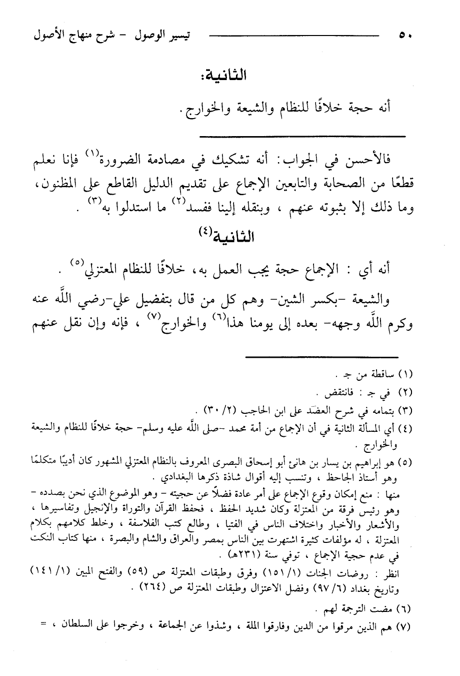 أنه أي: الإجماع حجة يجب العمل به، خلافًا للنظام المعتزلي.