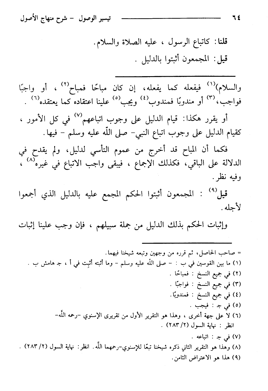 والسلام) فيفعله كما يفعله، إن كان مباحًا فمباح، أو واجبًا فواجب، أو مندوبًا فمندوب ويجب علينا اعتقاده كما يعتقده.