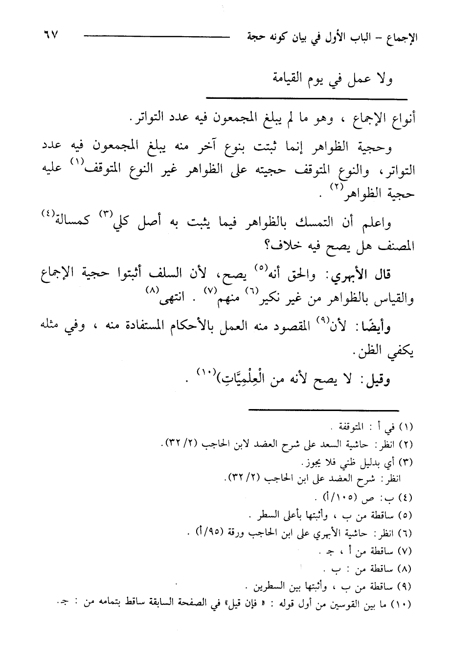 قال الأبهري: والحق أنه يصح، لأن السلف أثبتوا حجية الإجماع والقياس بالظواهر من غير نكير منهم. انتهى