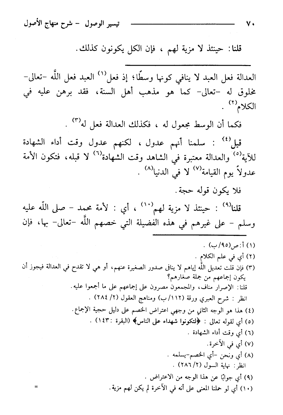 قيل: سلمنا أنهم عدول، لكنهم عدول وقت أداء الشهادة للآية والعدالة معتبرة في الشاهد وقت الشهادة لا قبله، فتكون الأمة عدولًا يوم القيامة لا في الدنيا.