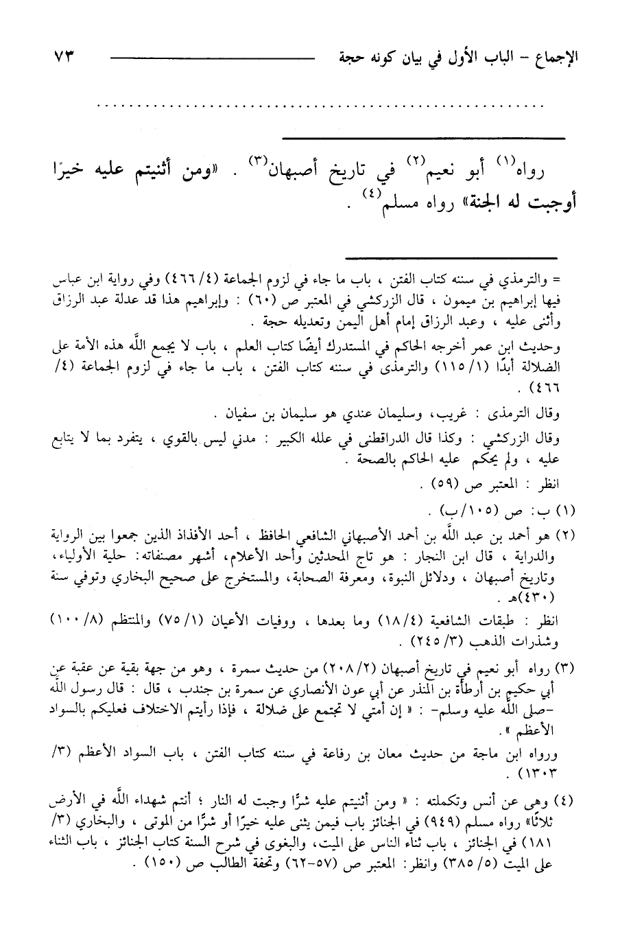 رواه أبو نعيم في تاريخ أصبهان. «ومن أثنيتم عليه خيرًا أوجبت له الجنة» رواه مسلم.