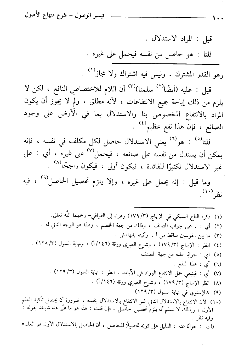 قلنا: هو يعني الاستدلال حاصل لكل مكلف في نفسه، فإنه يمكن أن يستدل من نفسه على صانعه، فيحمل على غيره، أي: على غير الاستدلال تكثيرًا للفائدة، فيكون أولى، فيكون راجحًا.