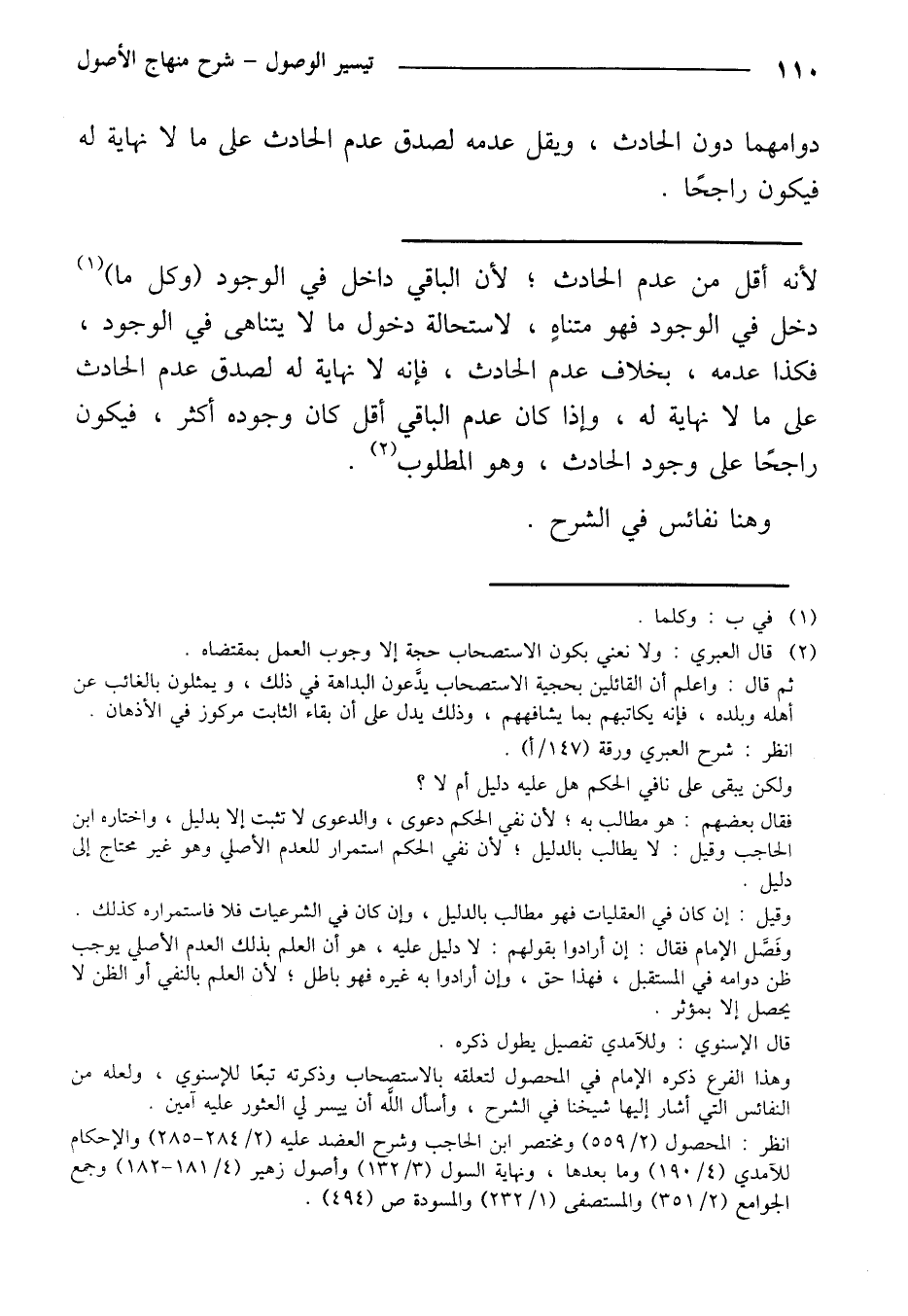 لأنه أقل من عدم الحادث؛ لأن الباقي داخل في الوجود (وكل ما) دخل في الوجود فهو متناه، لاستحالة دخول ما لا يتناهى في الوجود، فكذا عدمه، بخلاف عدم الحادث، فإنه لا نهاية له لصدق عدم الحادث على ما لا نهاية له، وإذا كان عدم الباقي أقل كانوجوده أكثر، فيكون راجحًا على وجو الحادث، وهو المطلوب.