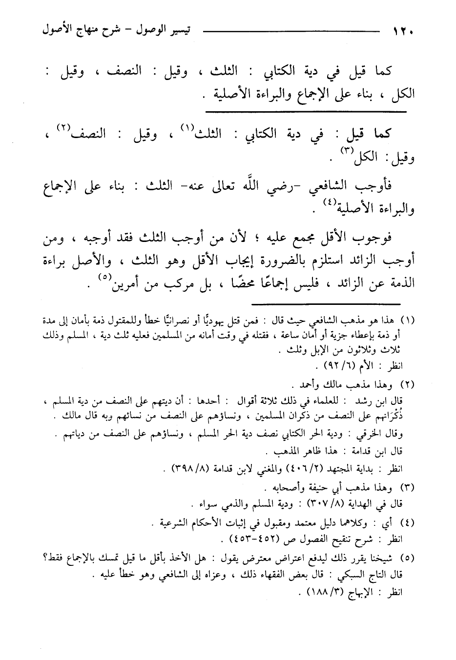 فوجوب الأقل مجمع عليه؛ لأن من أوجب الثلث فقد أوجبه، ومن أوجب ومن أوجب الزائد استلزم بالضرورة لإيجاب الأقل وهو الثلث، والأصل براءة الذمة عن الزائد، فليس إجماعًا، محضًا، بل مركب من أمرين.