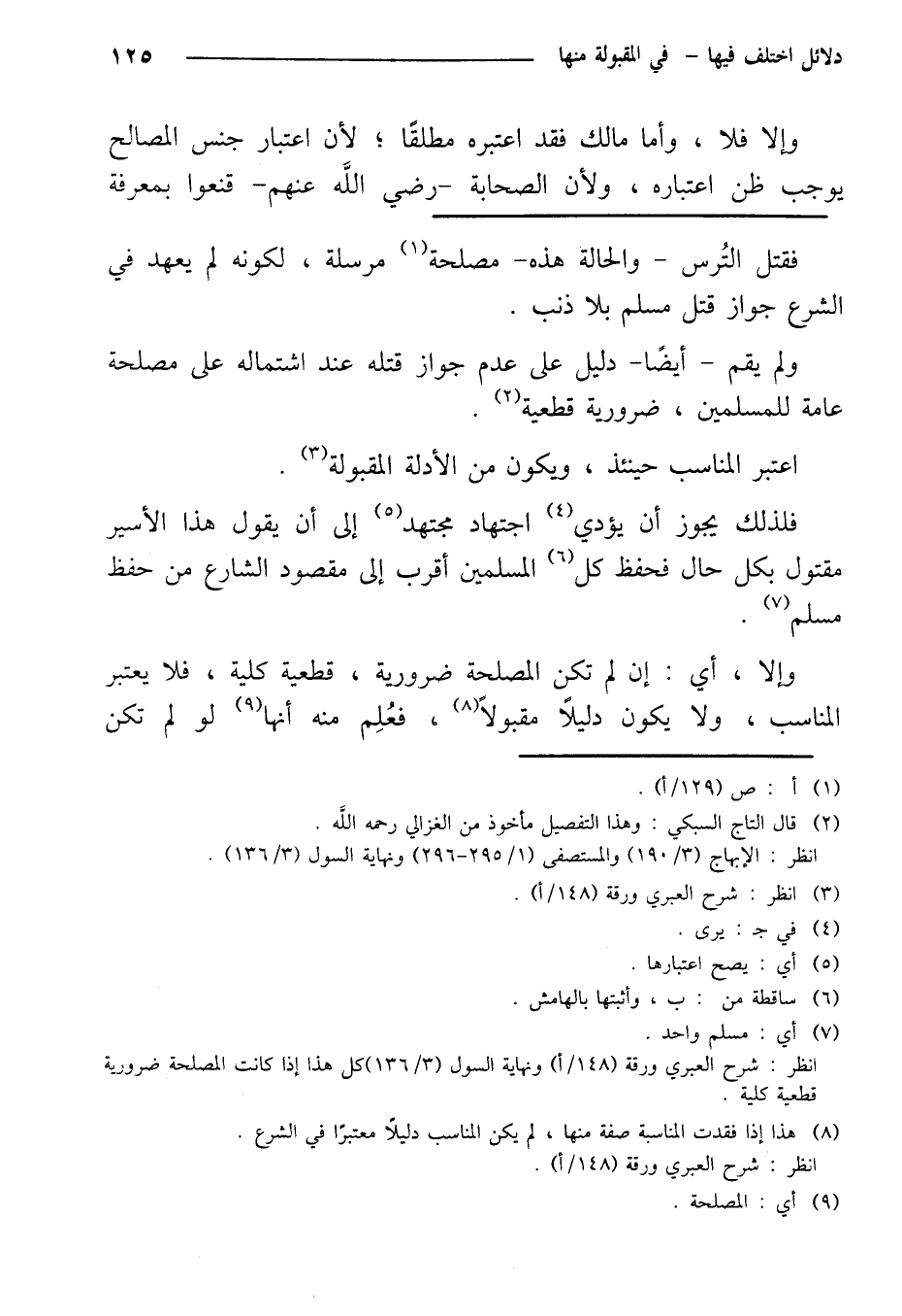 فلذلك يجوز أن يؤدي اجتهاد مجتهد إلى أن يقول هذا الأسير مقتول بكل حال فحفظ كل المسلمين أقرب إلى مقصود الشارع من حفظ مسلم.
