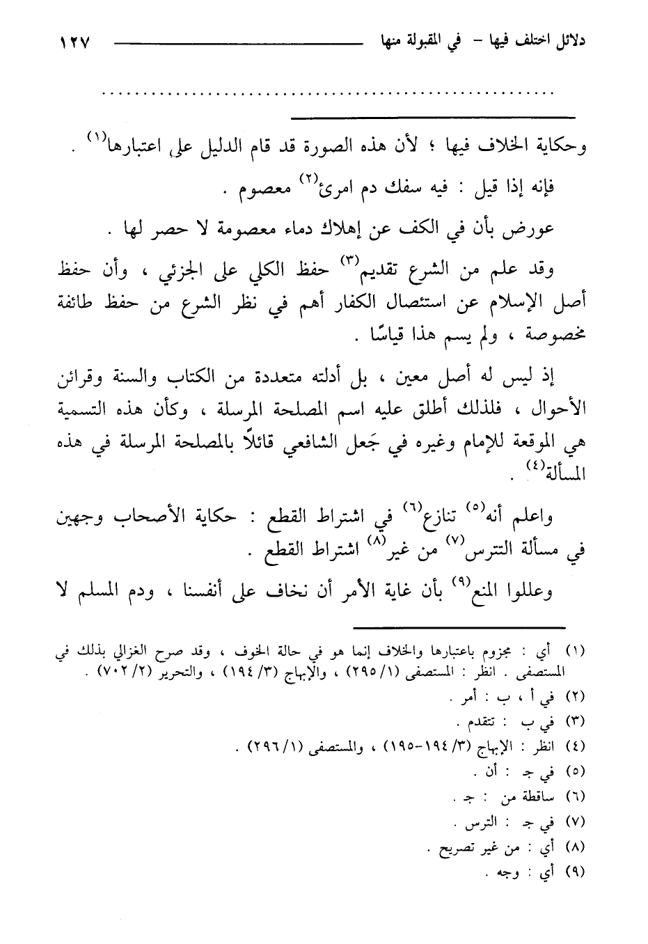 وقد علم من الشرع تقديم حفظ الكلي على الجزئي، وأن حفظ أصل الإسلام عن استئصال الكفار أهم في نظر الشرع من حفظ طائفة مخصوصة، ولم يسم هذا قياسًا.