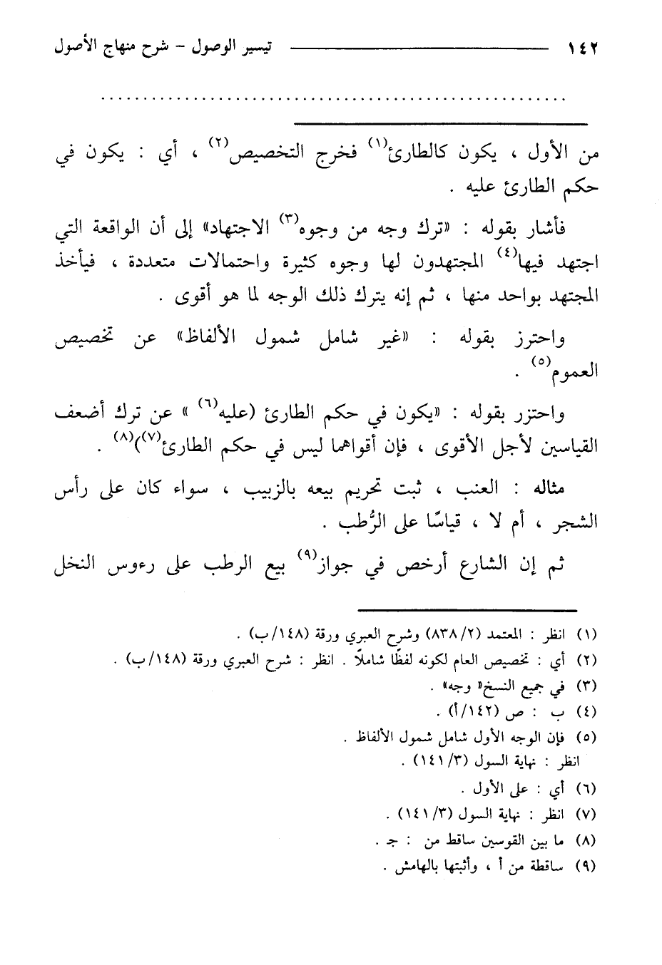 من الأول، يكون كالطارئ فخرج التخصيص، أي: يكزن في حكم الطارئ عليه.