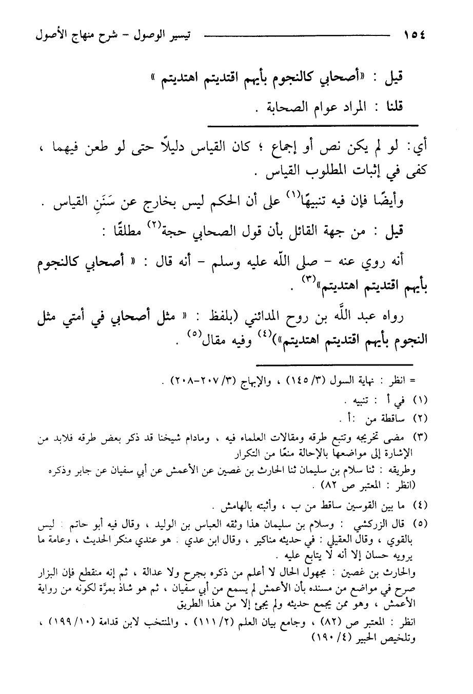 أنه روي عنه- صلى الله عليه وسلم- أنه قال: "أصحابي كالنجوم بأنهم اقتديتم اهتديتم"