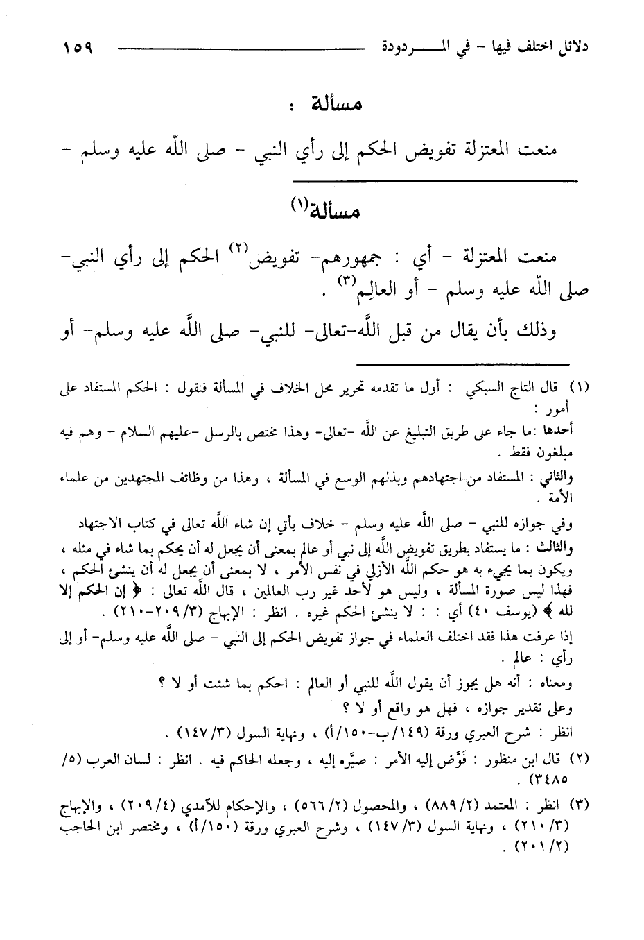 منعت المعتزلة -أي: جمهورهم- تفويض الحكم إلى رأي النبي- صلى الله عليه وسلم- أو العالم.