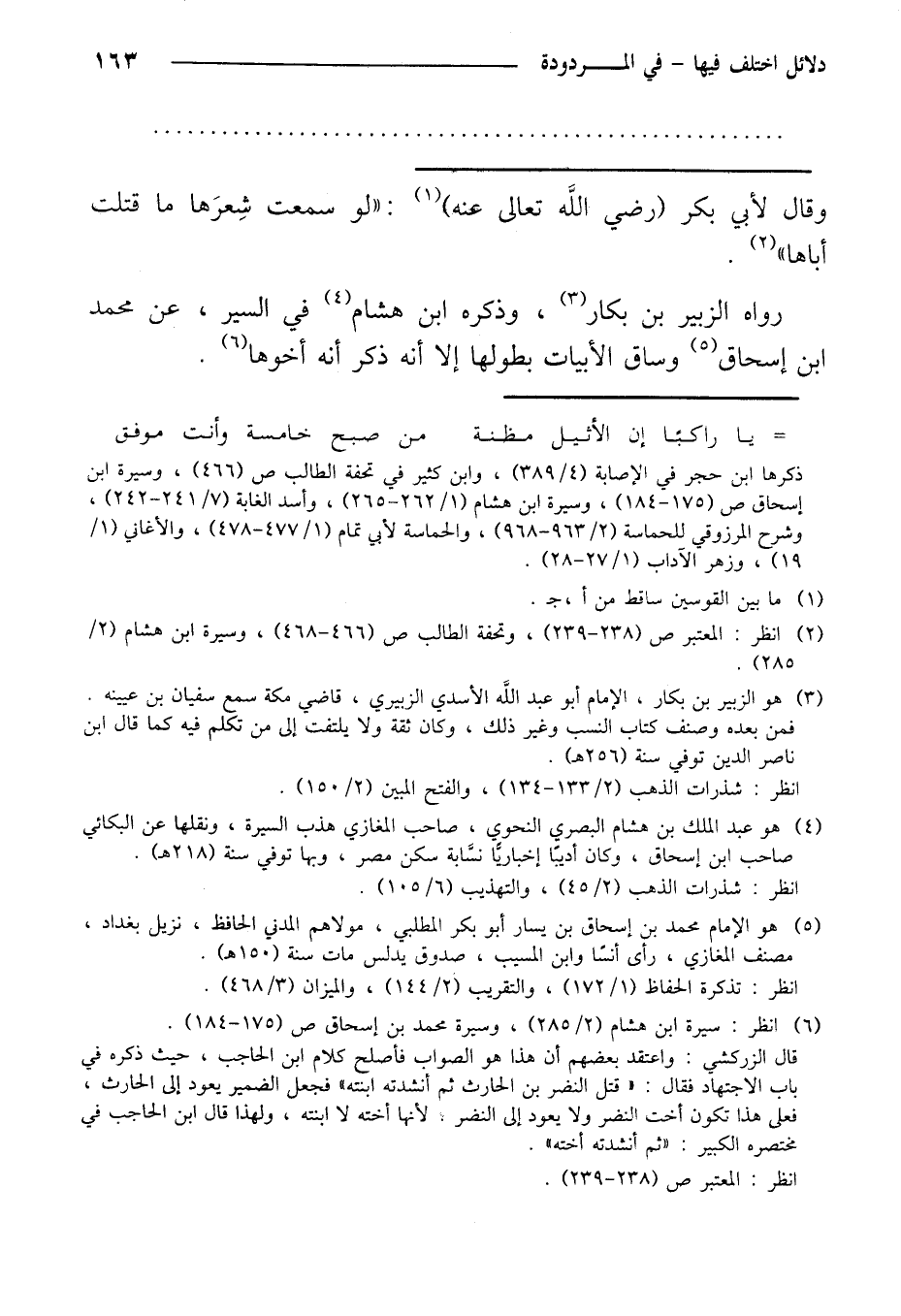 رواه الزبير بن بكار، وذكره ابن هشام في السير، عن محمد ابن إسحاق وساق الأبيات بطولها إلا أنه ذكر أنه أخوها.