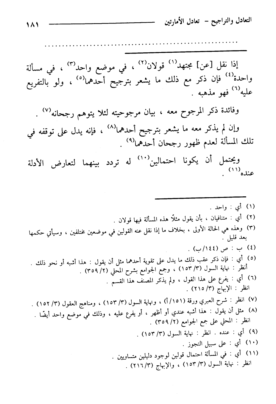 إذا نقل عن إمامنا أشياء [عن] مجتهد قولان، في موضع واحد، في مسألة واحدة فإن ذكر مع ذلك ما يشعر بترجيح أحدهما، ولو بالتفريع عليه فهو مذهبه.