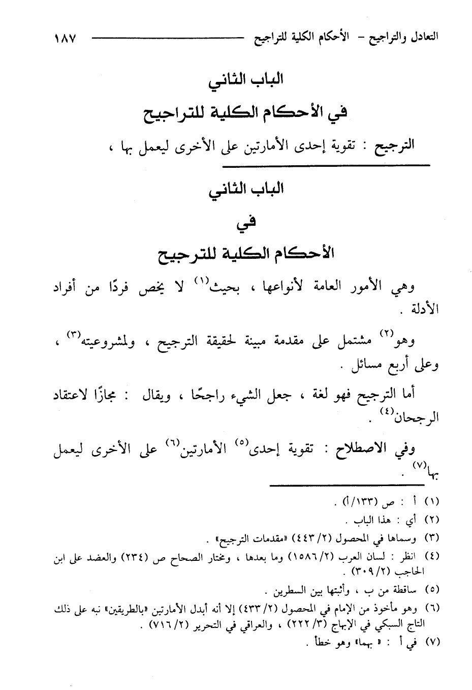 الباب الثاني: في الأحكام الكلية للترجيح