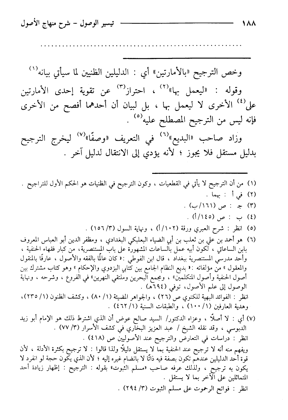وخص الترجيح "بالأمارتين" أي: الدليلين الظنيين لما سيأتي بيانه وقوله: "ليعمل بها"، احتراز عن تقوية إحدى الإمارتين على الأخرى لا ليعمل بها، بل لبيان أن أحدهما أفصح من ألأخرى فإنه ليس من الترجيح المصلح عليه.