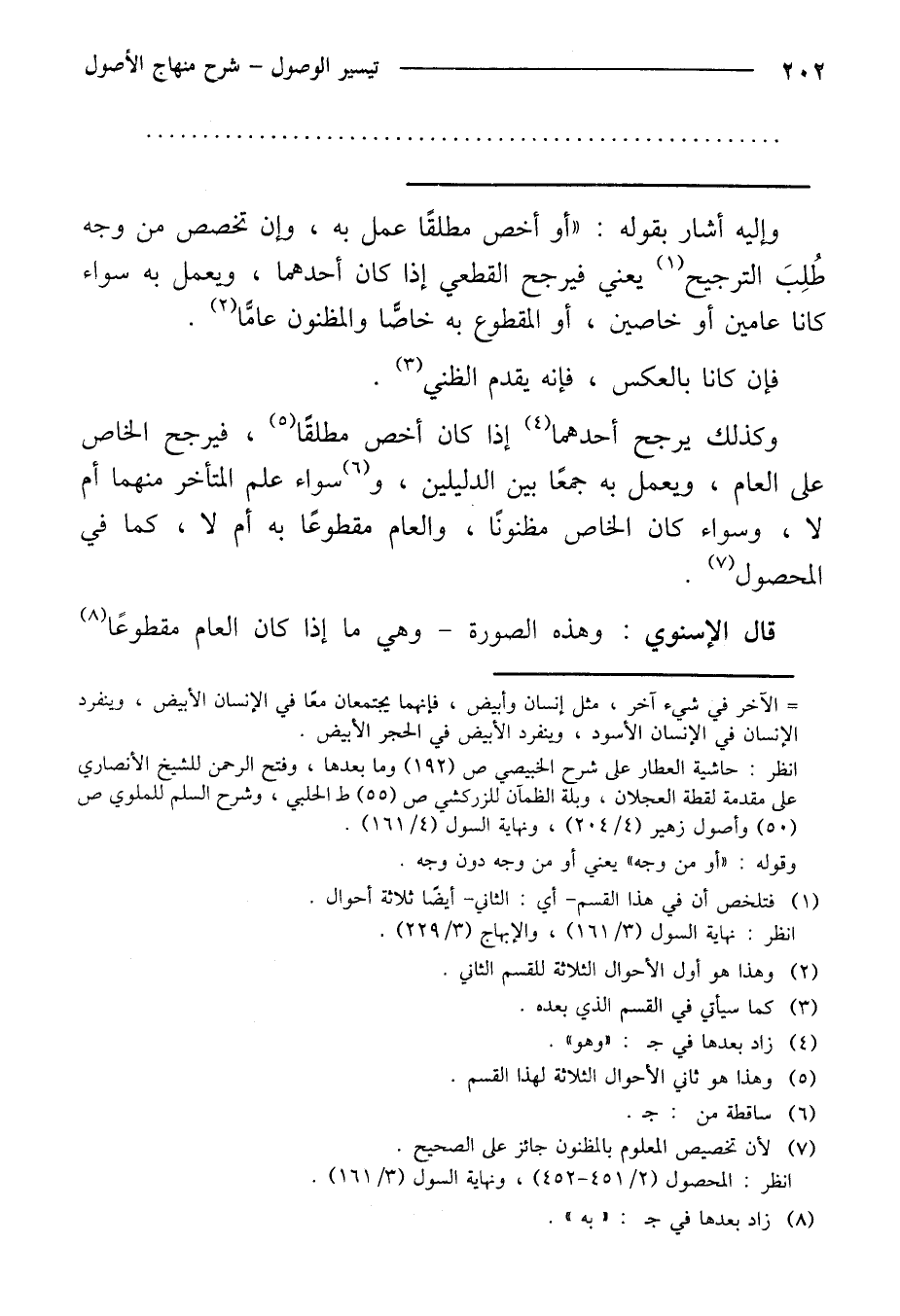 وكذلك يرجح أحدهما إذا كان أخص مطلقًا، فيرجح الخاص على العام، ويعمل به جمعًا بين الدليلين، وسواء علم المتأخر منهما أم لا، وسواء كان الخاص مظنونًا، والعام مقطوعًا به أم لا، كما في المحصول.