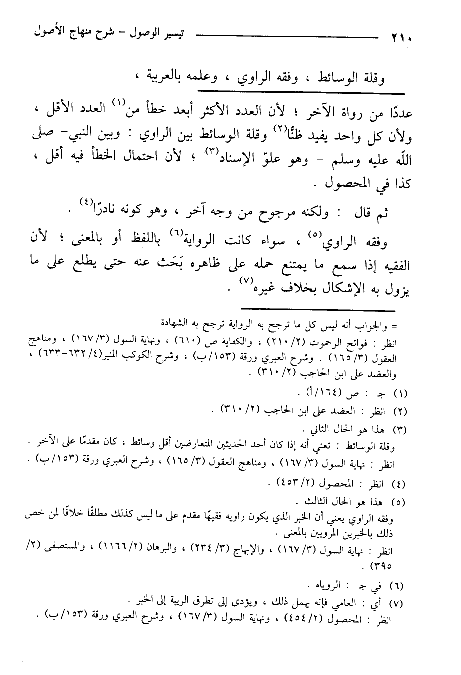 عددًا من رواة الآخر؛ لأن العدد الأكثر أبعد خطأ من العدد الأقل، ولأن كل واحد يفيد طنًا وقلة الوسائط بين الراوي: وبين النبي -صلى الله عليه وسلم- وهو علو الإسناد؛ لأن احتمال الخطأ فيه أقل، كذا في المحصول