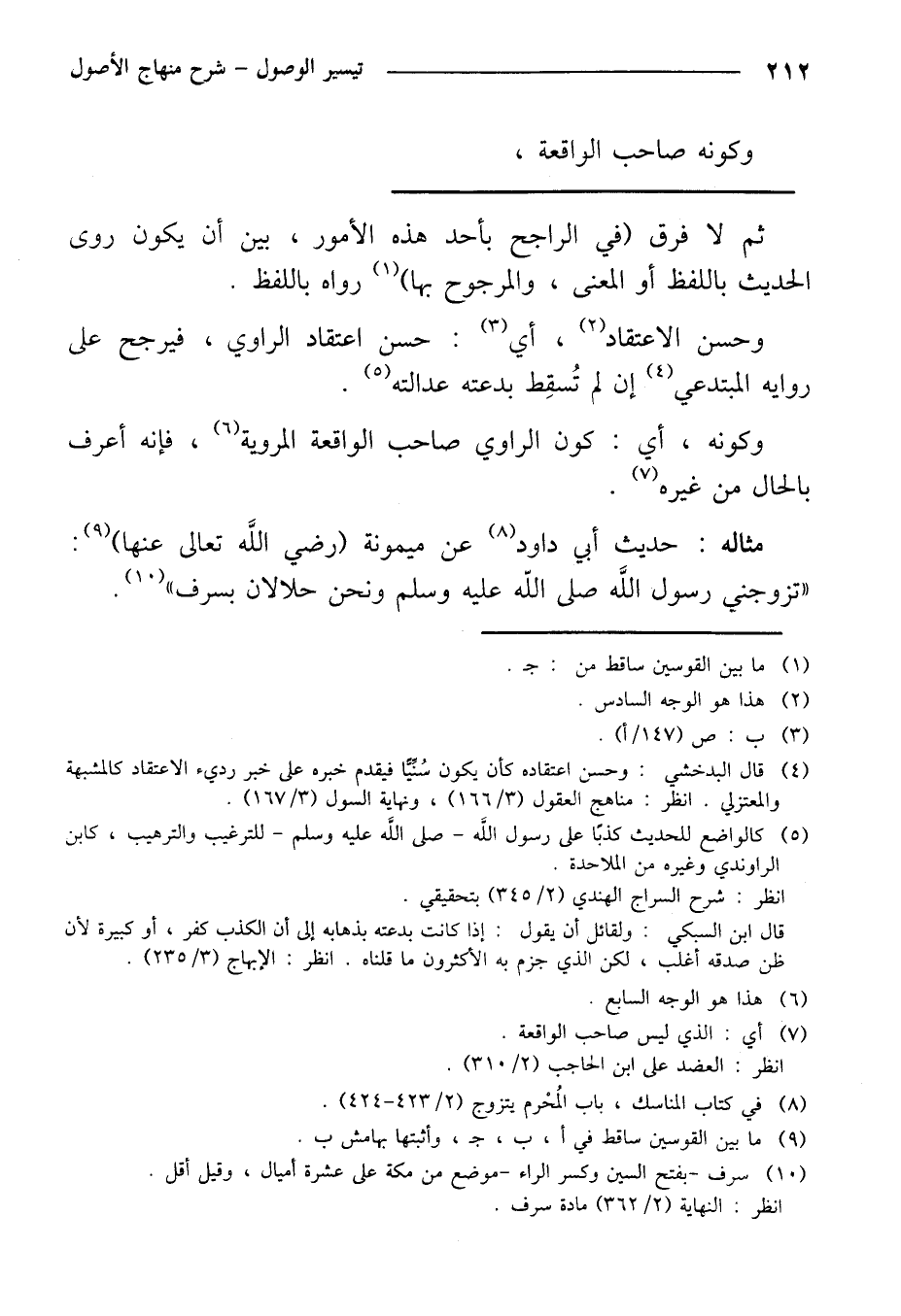 مثاله: حديث أبي داود عن ميمونة (رضي الله تعالى عنها): «تزوجني رسول الله صلى الله عليه وسلم ونحن حلالان بسرف».