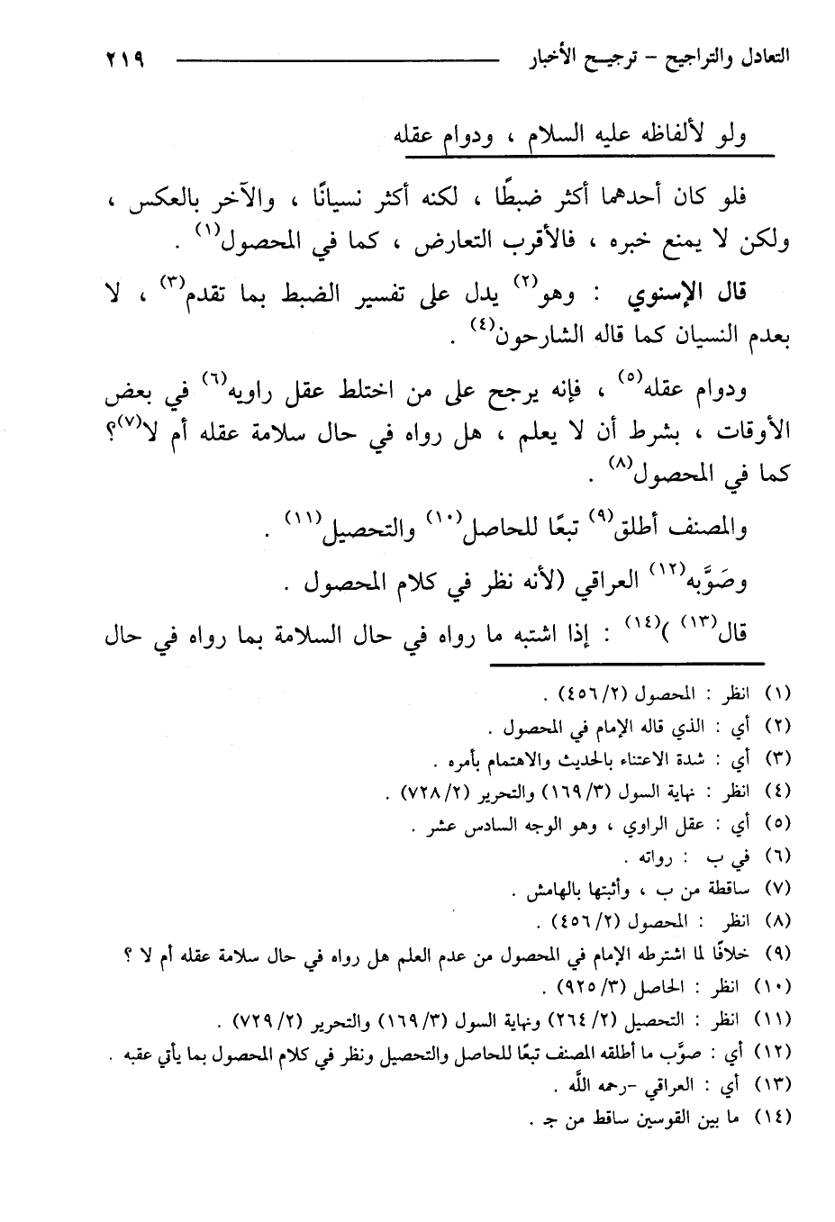 ودوام عقله، فإنه يرجح على من اختلط عقل راويه في بعض الأوقات، بشرط أن لا يعلم، هل رواه في حال سلامة عقله أم لا؟ كما في المحصول.