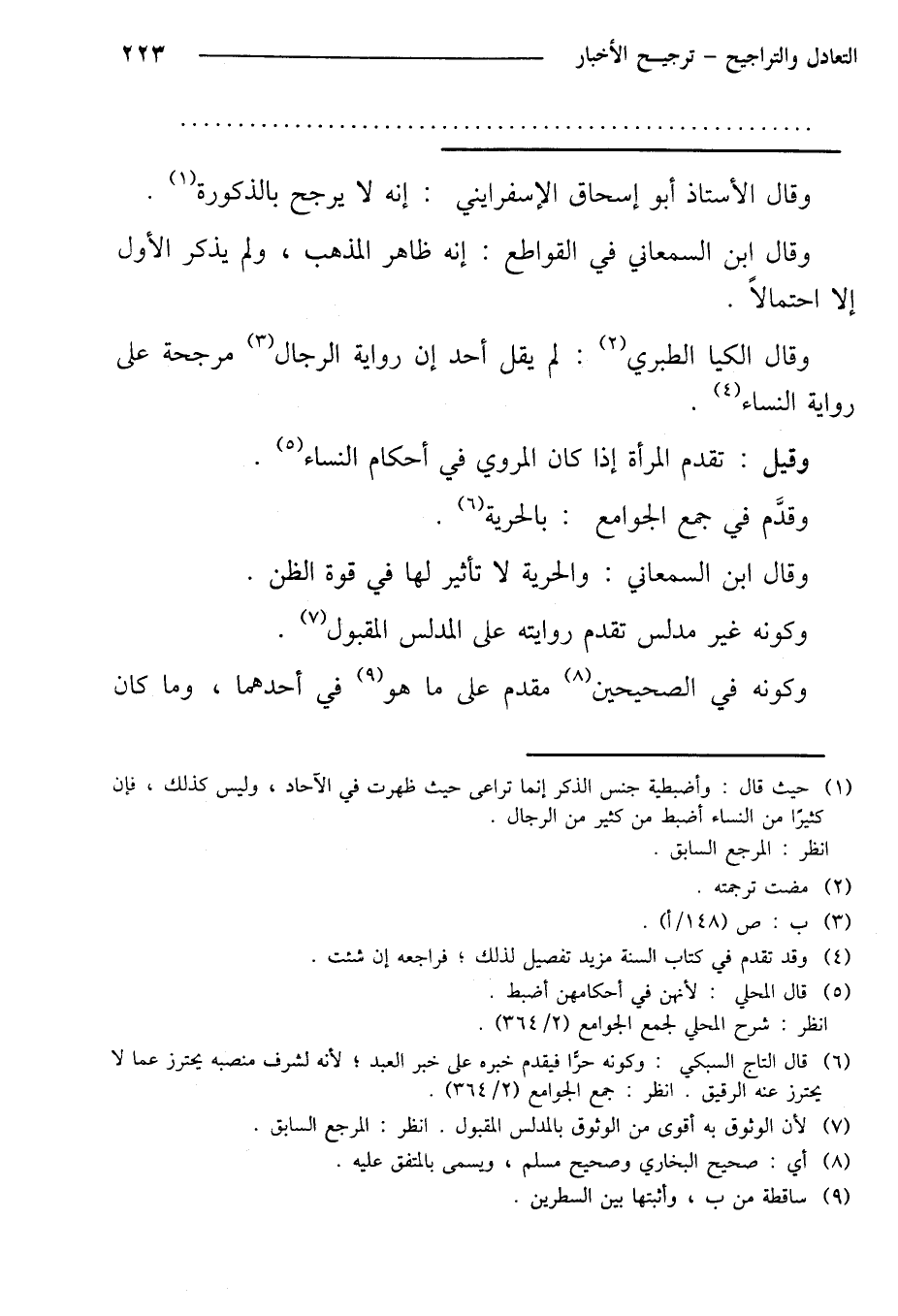 وقال الكيا الطبري: لم يقل أحد إن رواية الرجال مرجحة على رواية النساء.