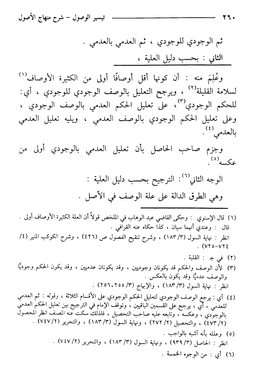 وعلم منه: أن كونها أقل أوصافًا أولى من الكثيرة الأوصاف لسلامة القليلة، ويرجح التعليل بالوصف الوجودي للوجودي، أي: للحكم الوجودي، على تعليل الحكم العدمي بالوصف الوجودي، وعلى تعليل الحكم الوجودي بالوصف العدمي، ويليله تعليل العدمي بالعدمي.