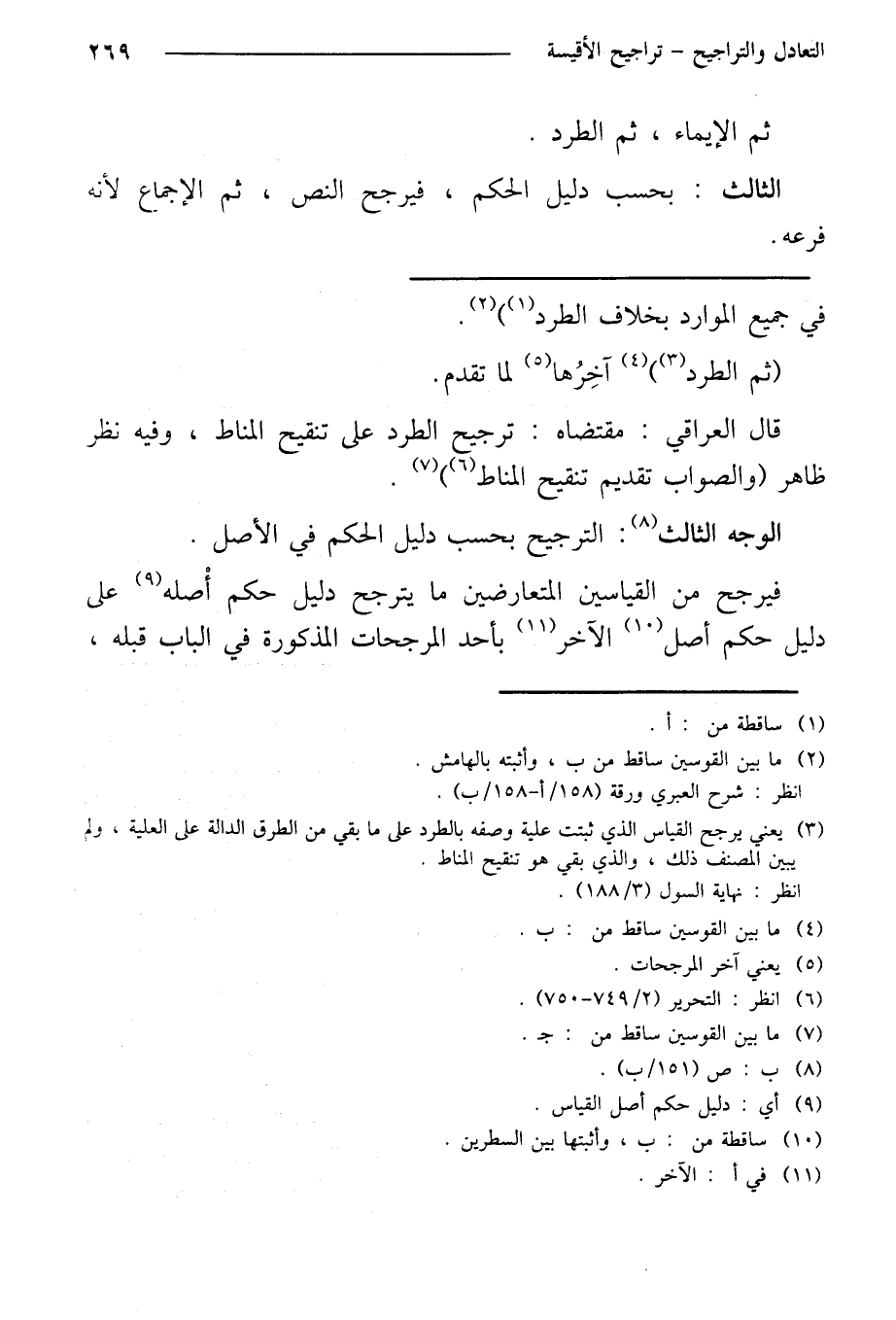 قال العراقي: مقتضاه: ترجيح الطرد على تنقيح المناط، وفيه نظر ظاهر (والصواب تقديم تنقيح المناط).