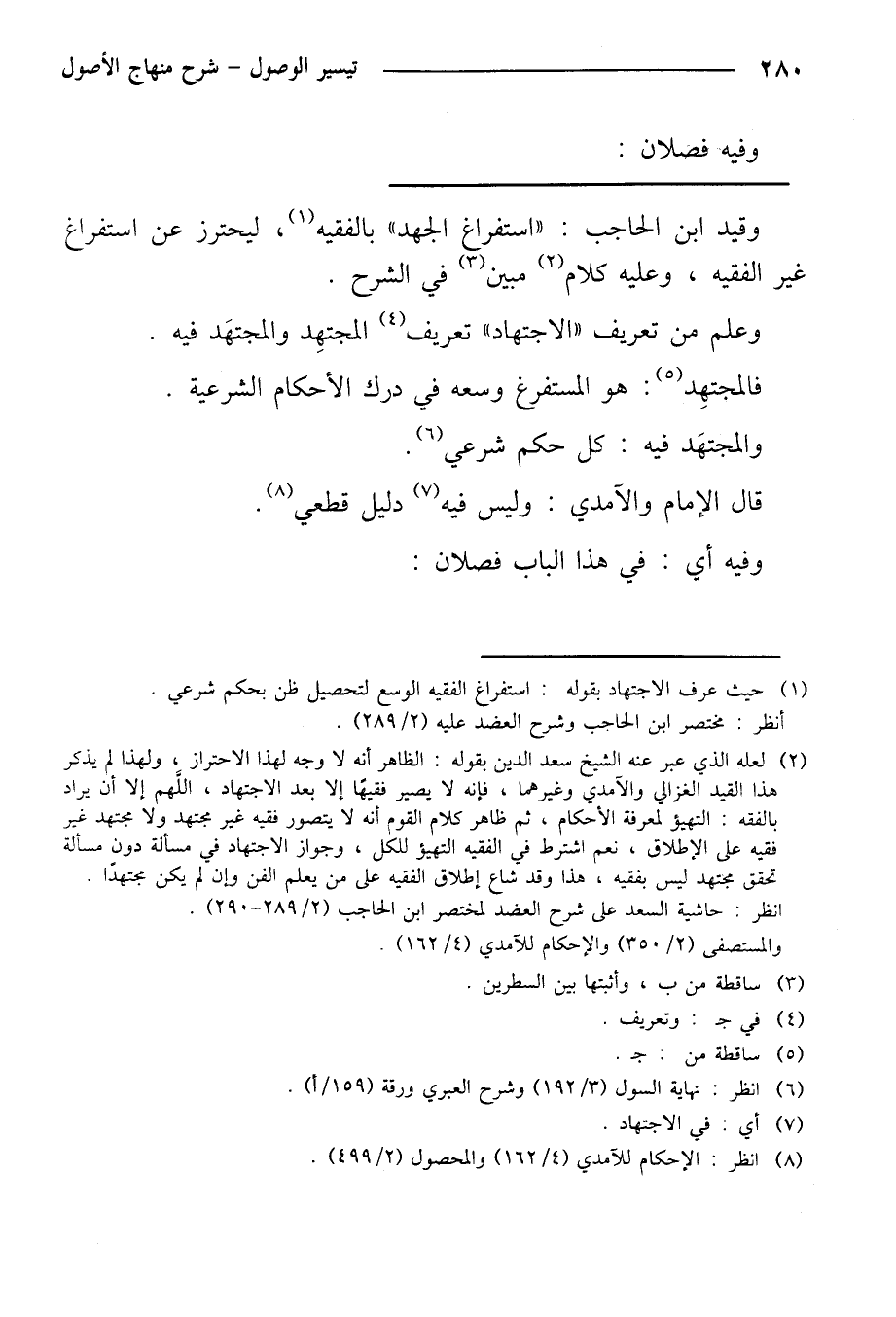 وقيد ابن الحاجب: "استفراغ الجهد" بالفقيه، ليحترز عن استفراغ غير الفقيه، وعليه كلام مبين في الشرح.
