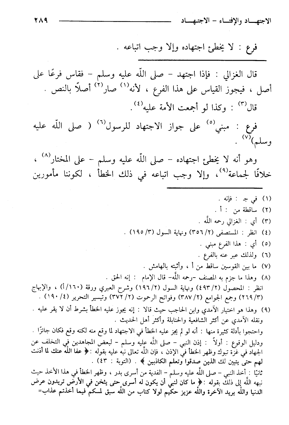 وهو أنه لا يخطئ اجتهاده -صلى الله عليه وسلم- على المختار، خلافًا لجماعة، وإلا وجب اتباعه في ذلك الخطأ، لكوننا مأمورين