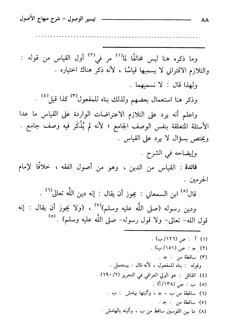واعلم أنه يرد على التلازم الاعتراضات الواردة على القياس ما عدا الأسئلة المتعلقة بنفس الوصف الجامع؛ لأنه لم يذكر فيه وصف جامع.