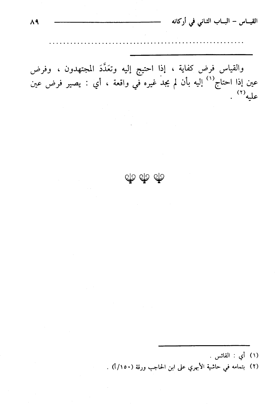 والقياس فرض كفاية، إذا احتيج إليه وتعدد المجتهدون، وفرض عين إذا احتاج إليه بأن لم يجد غيره في واقعة، أي: يصير فرض عين عليه.