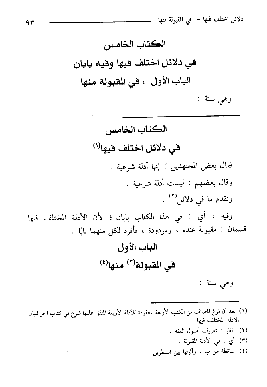 وفيه، أي: في هذا الكتاب بابان؛ لأن الأدلة المختلف فيها قسمان: مقبولة عنده، ومردودة، فأفرد لكل منهما بابًا.