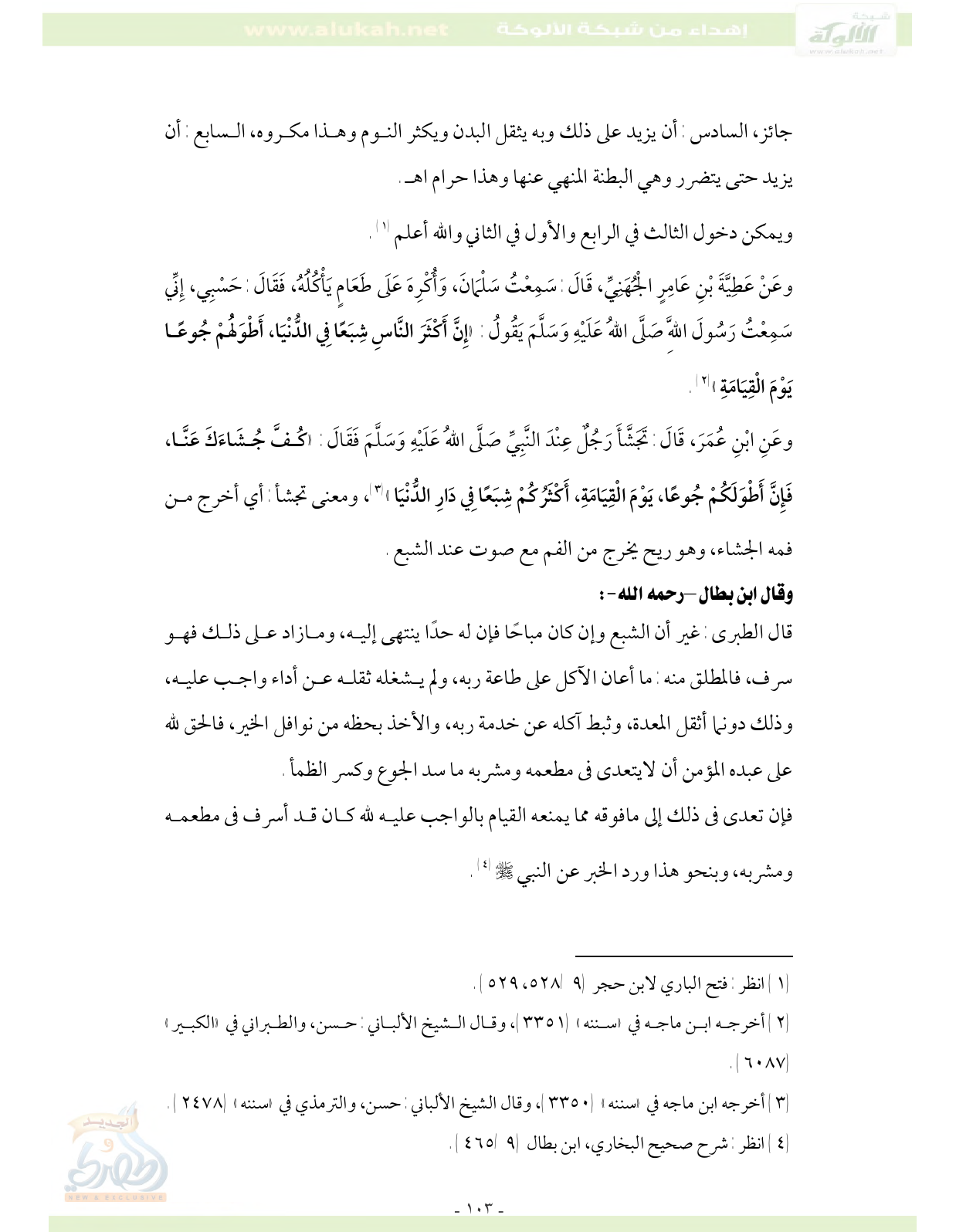 (¬4) انظر: شرح صحيح البخاري، ابن بطال (9/ 465).