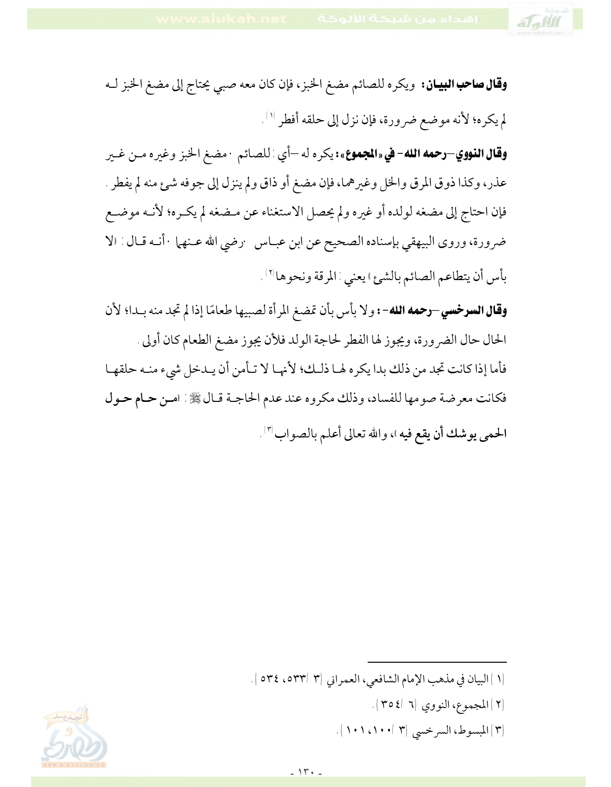 (¬1) البيان في مذهب الإمام الشافعي، العمراني (3/ 533، 534).