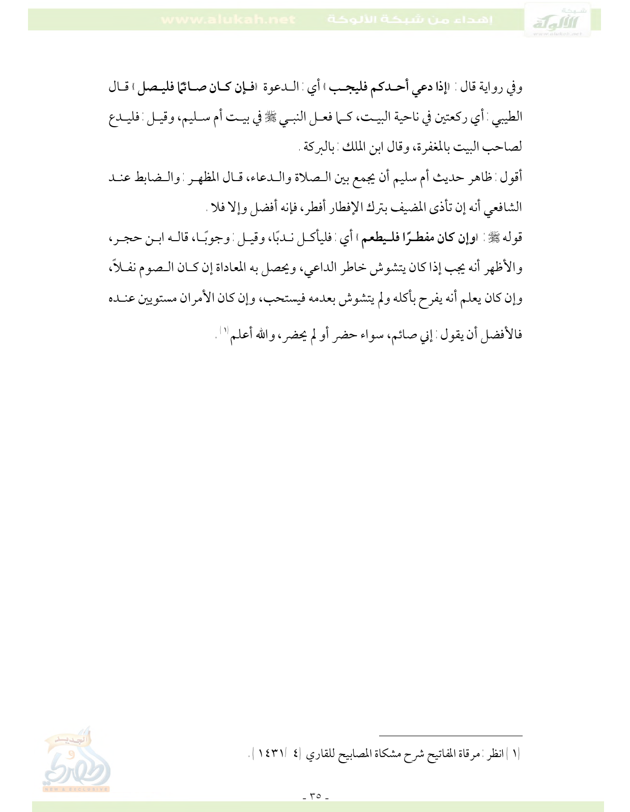 (¬1) انظر: مرقاة المفاتيح شرح مشكاة المصابيح للقاري (4/ 1431).