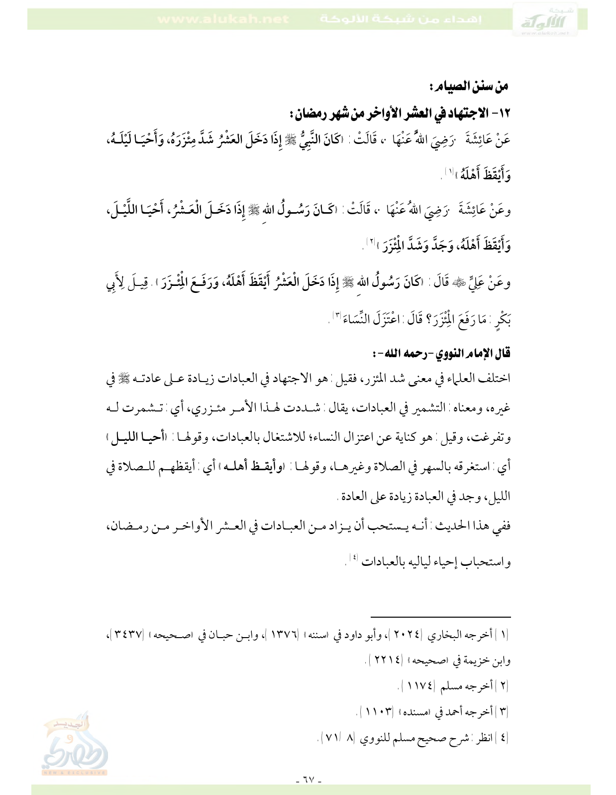 12 - الاجتهاد في العشر الأواخر من شهر رمضان:
