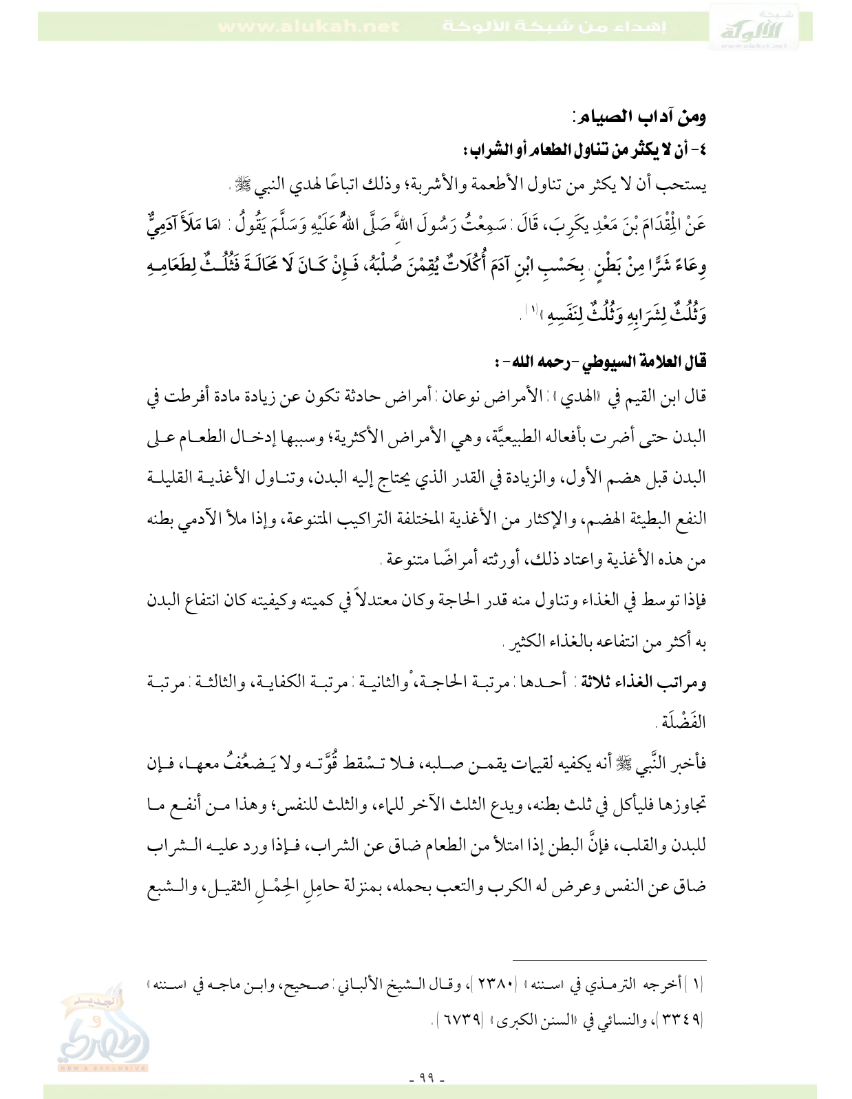 4 - أن لا يكثر من تناول الطعام أو الشراب:
